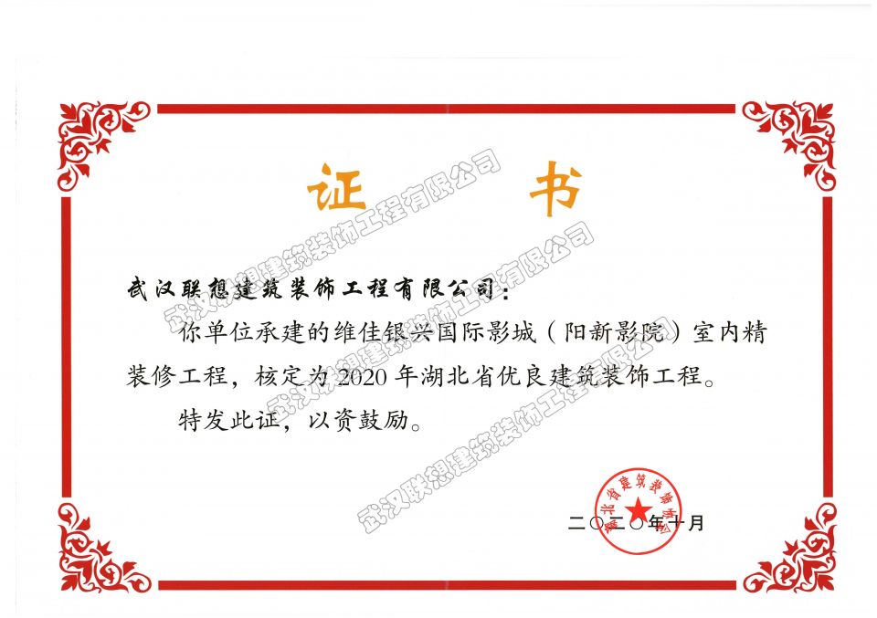 2020年湖北省優(yōu)良建筑裝飾工程(維佳銀興國際影城(陽新影院)室內(nèi)精裝修)