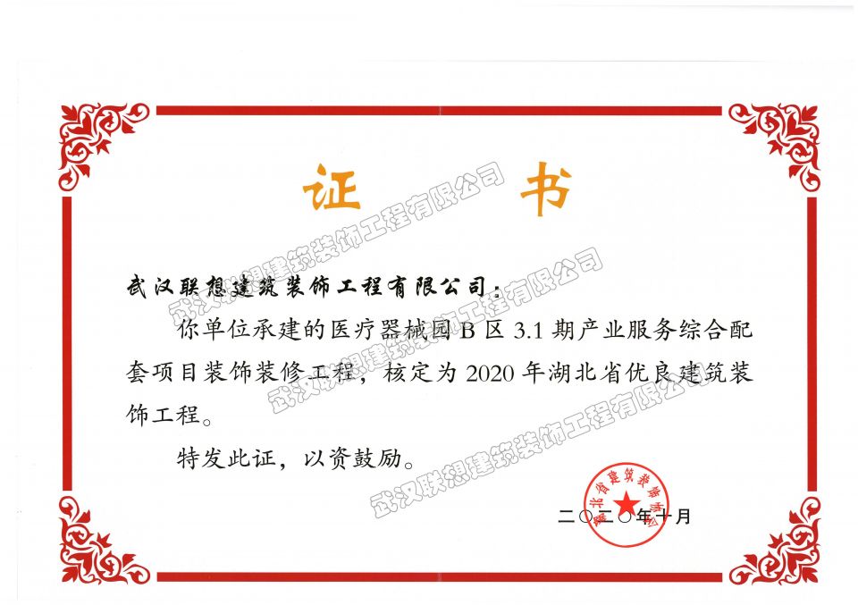 2020年湖北省優(yōu)良建筑裝飾工程(醫(yī)療器械園B區(qū)3.1期產(chǎn)業(yè)服務(wù)綜合配套項(xiàng)目裝飾工程)