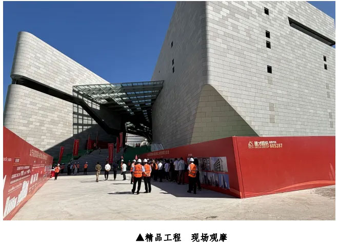 與會代表不僅在會場上思想碰撞、坐而論道,還近距離參觀了由德才股份承建青島博物館擴建工程項目。該項目總投資5.69 億元,建筑面積 5.5 萬方,項目團隊圍繞“魯班獎”項目目標深耕管理、科技創(chuàng)新、文明施工,匠心打造精品工程。