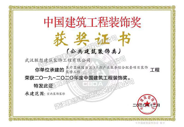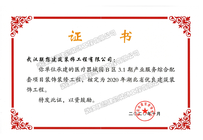 2020年湖北省優(yōu)良建筑裝飾工程(醫(yī)療器械園B區(qū)3.1期產(chǎn)業(yè)服務(wù)綜合配套項(xiàng)目裝飾工程)