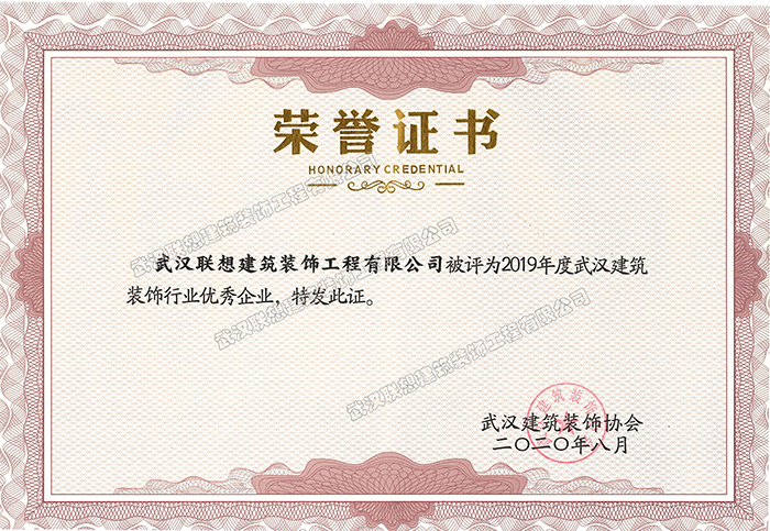 2019年度武漢建筑裝飾行業(yè)優(yōu)秀企業(yè)