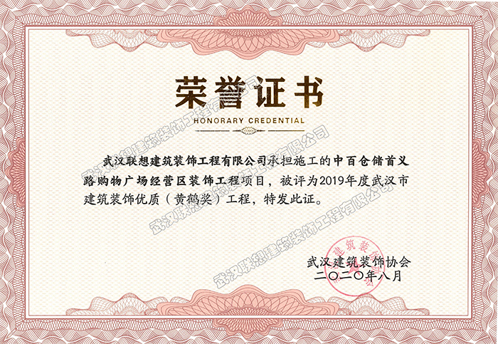 2019年度武漢市建筑裝飾工程黃鶴杯(中百倉儲(chǔ)首義路購物廣場經(jīng)營區(qū)裝飾工程)