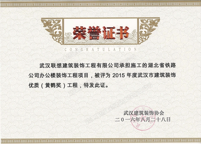 2015年度武漢市建筑裝飾優(yōu)質(zhì)工程黃鶴杯(武漢長江融達(dá)電子有限公司辦公大樓裝飾工程)
