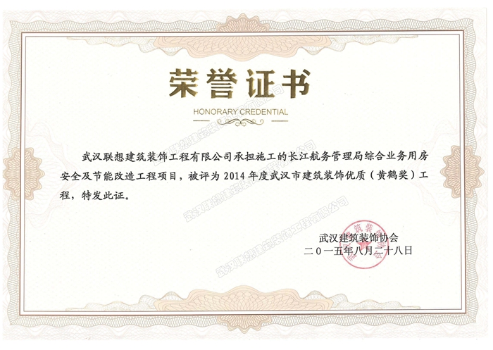 2014年度武漢市建筑裝飾優(yōu)質(zhì)工程黃鶴杯(長江航務(wù)管理局綜合業(yè)務(wù)用房安全節(jié)能改造工程)